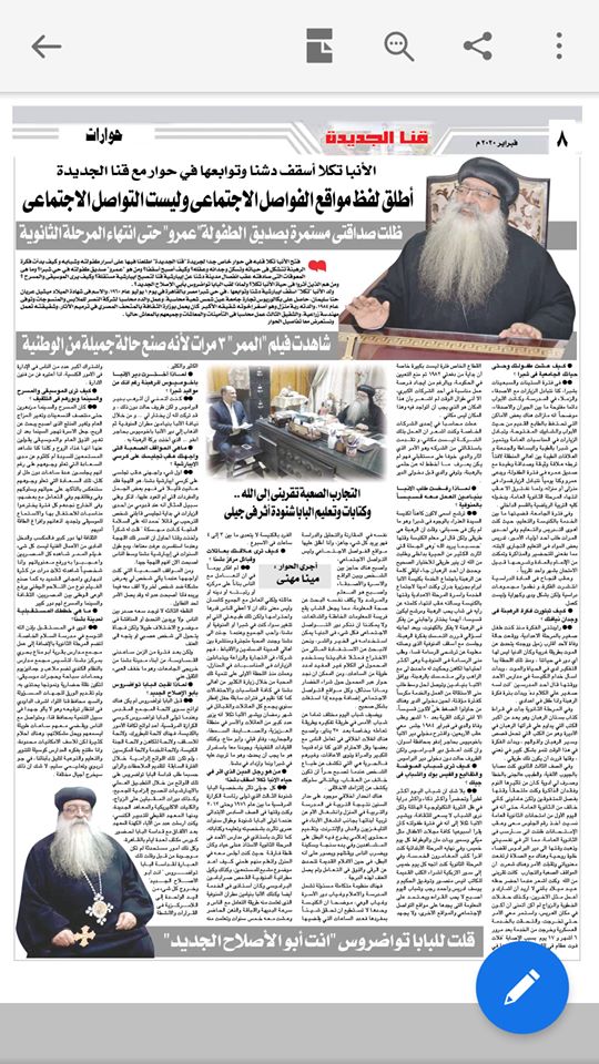 الانبا تكلا يطلق على مواقع التواصل لفظ مواقع الفواصل الاجتماعي وليس التواصل الاجتماعي