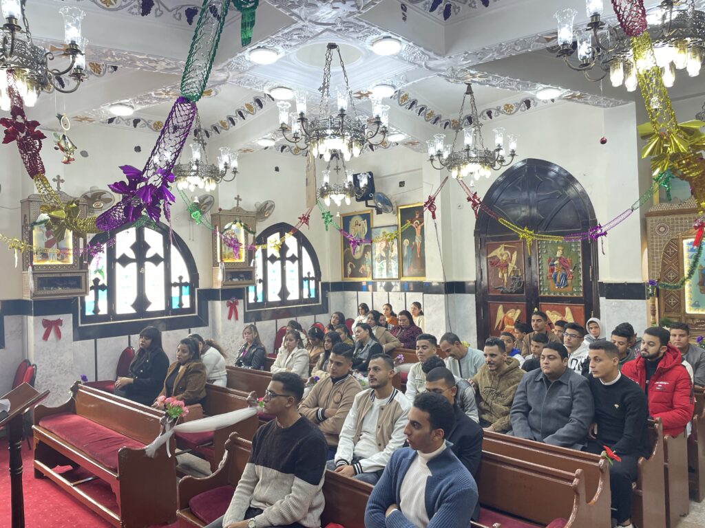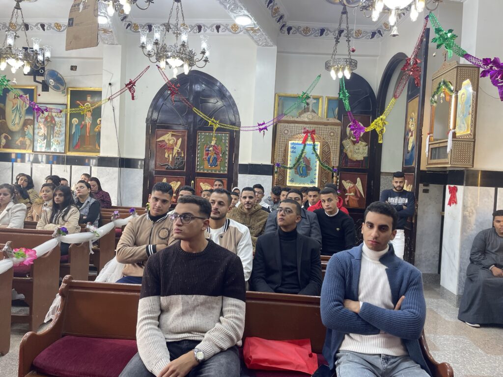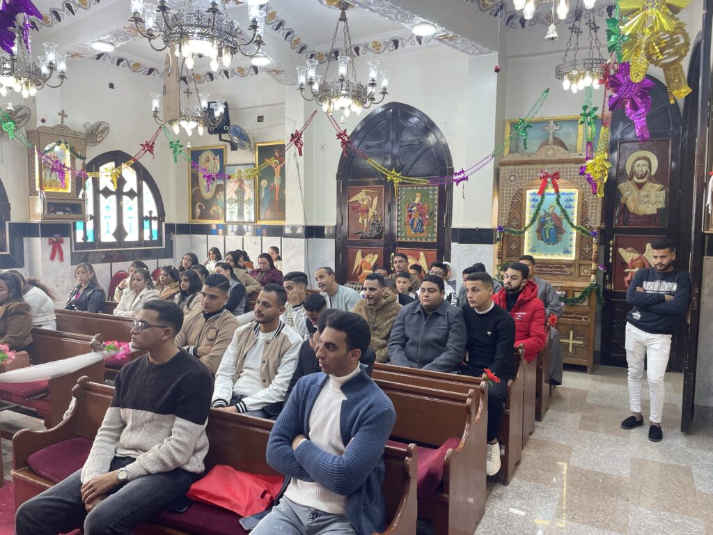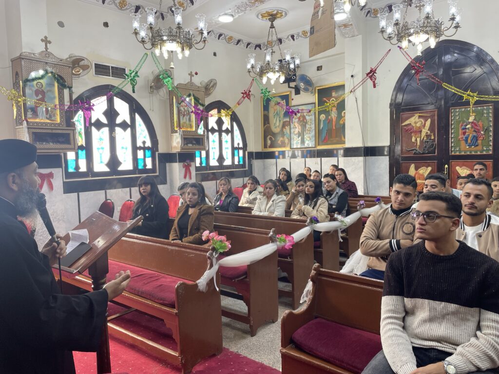 بصلوات صاحب النيافه الحبر الجليل الانبا تكلا مطران دشنا وتوابعها وبصلوات الاباء الاجلاء ابونا القمص يسطس وديع وابونا القس بيجول فام اجتمع ابونا القس بيجول فام بالشباب اليوم الاحد وقام بالقاء عظه روحيه بعد فقرة ترانيم والحان الميلاد