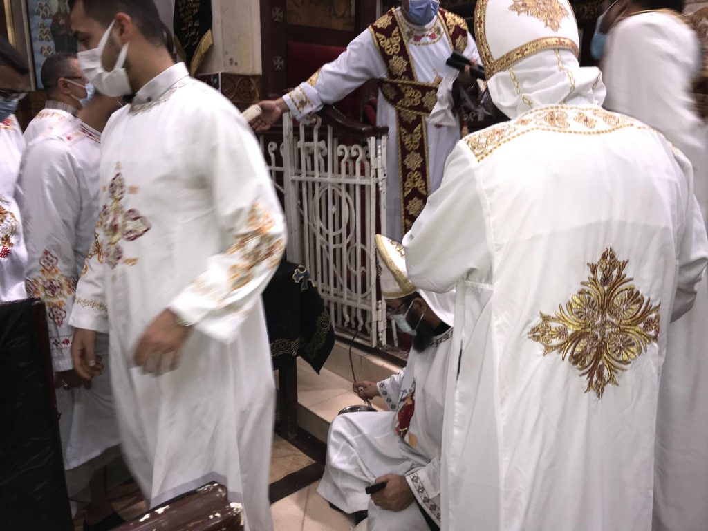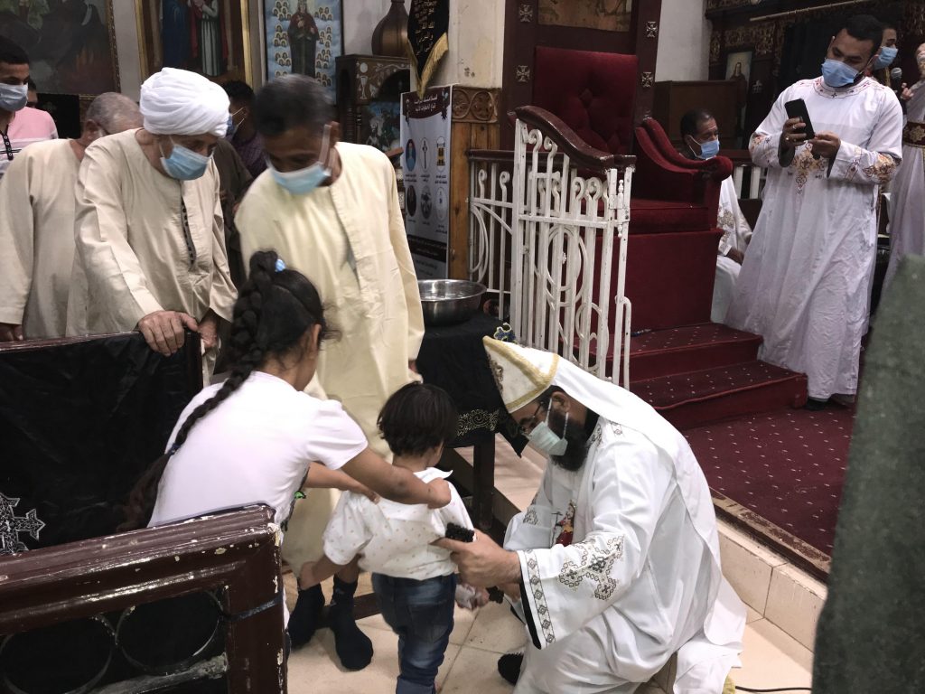 الانبا تكلا اسقف دشنا في زياره لمستشفي ٥٧٣٥٧ لعلاج سرطان الاطفال