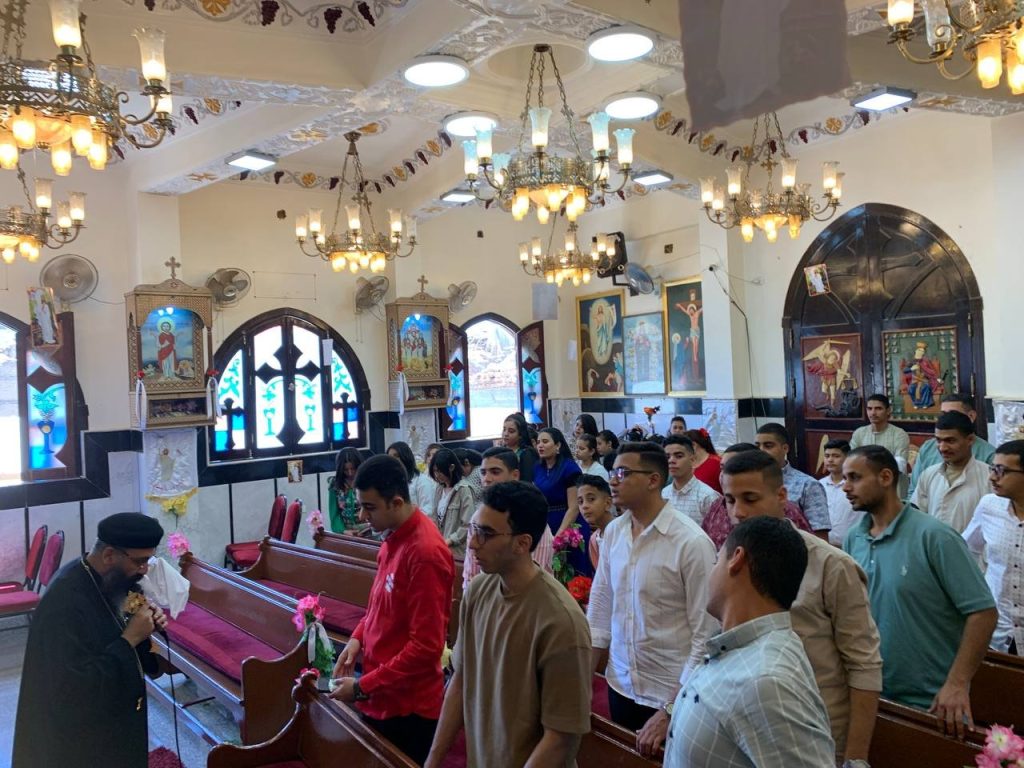 بصلوات صاحب النيافه الحبر الجليل الانبا تكلا مطران دشنا وتوابعها وبصلوات الاباء الاجلاء ابونا القمص يسطس وديع وابونا القس بيجول فام اجتمع ابونا القس بيجول فام بالشباب اليوم الاحد وقام بالقاء عظه روحيه بعد فقرة ترانيم والحان القيامه