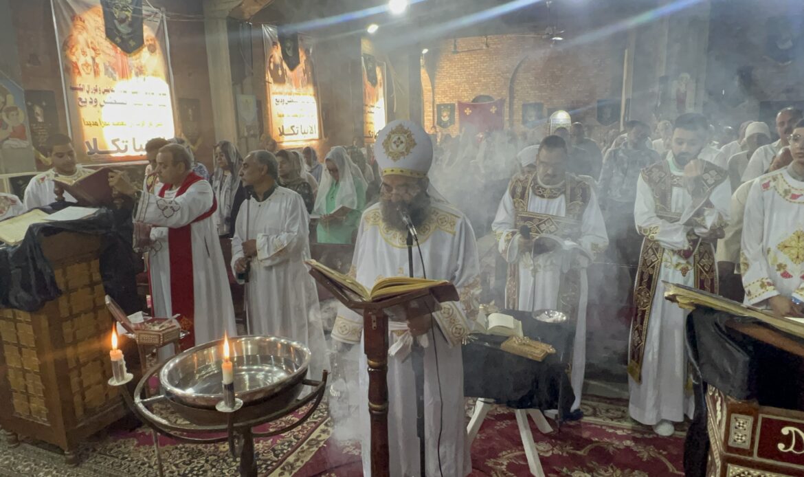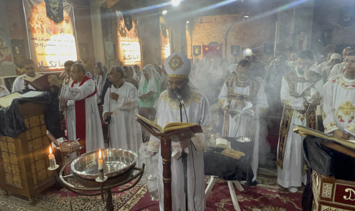 ترأس صلاة القداس القمص يسطس وديع، كاهن الكنيسة، وسط حضور من أبناء الشعب القبطي، الذين شاركوا في هذا اليوم الفريد من نوعه، الذي يسبق الجمعة العظيمة، ويُعد أحد أقدس أيام السنة الطقسية في الكنيسة القبطية الأرثوذكسية.